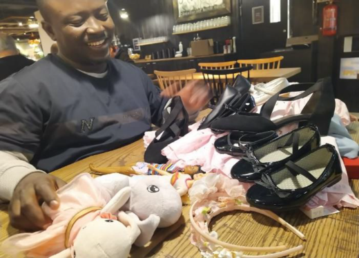 Yksi nuorista äideistämme, Reetta, auttoi tekemään tuliaisostoksissa Jinnahin tytöille. Sekös ilahdutti.